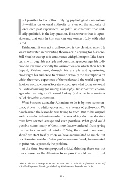call critical thinking (or, simply, philosophy), Krishnamurti encour-